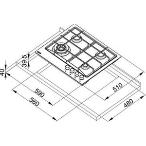 Franke FHNE 604 3G TC XS C Black, Stainless steel Built-in Gas 4 zone(s)