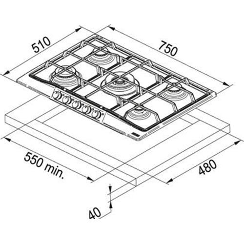 Franke 750 FHTL 755 4G TC AL E Aluminium, Noir Intégré (placement) Gaz 5 zone(s)